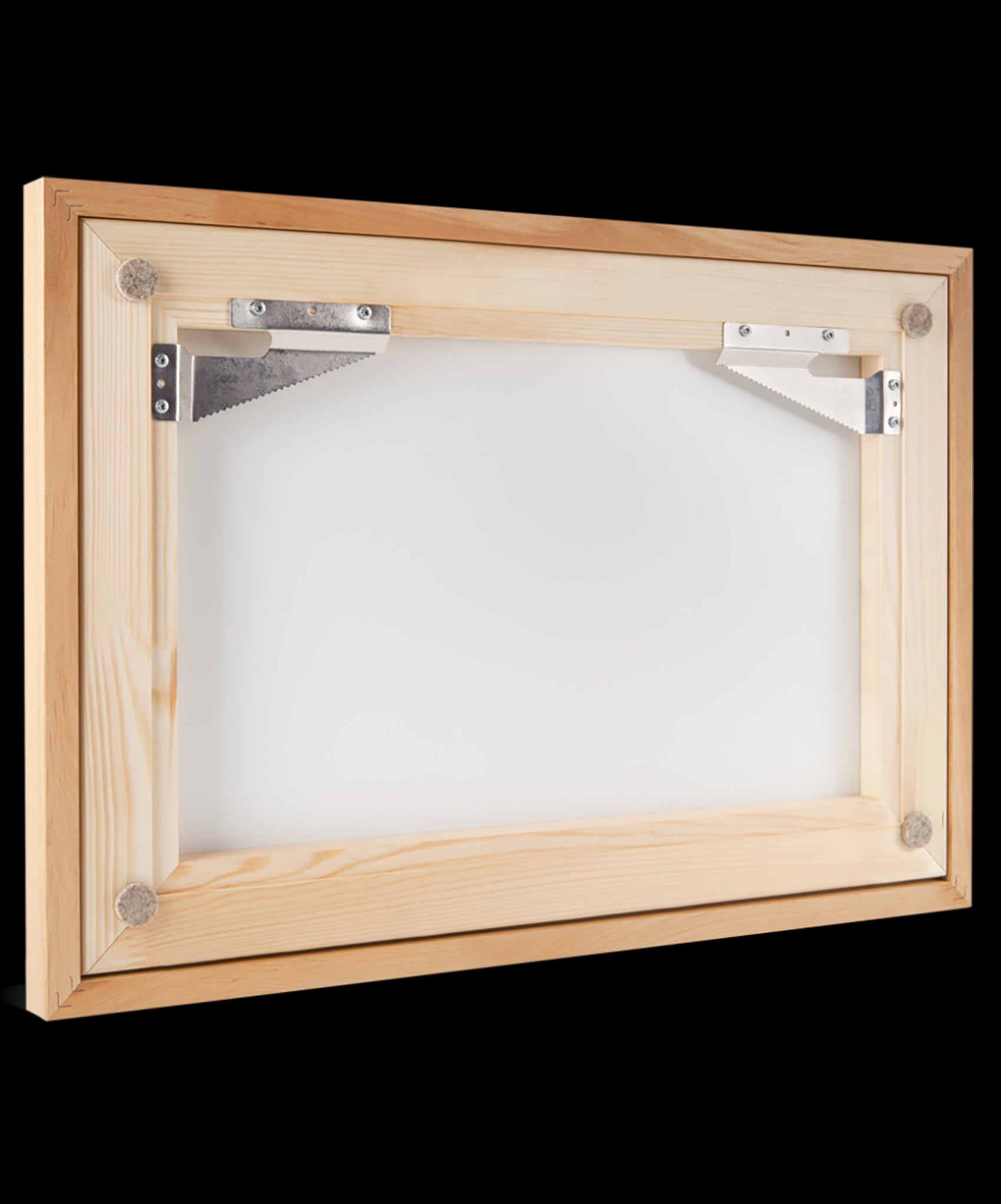 Each artwork is custom framed within a .59" hardwood floater frame. A small gap between the frame and the edges of the glass makes the artwork appear to float inside the frame. Available in white, black and brown matte finishes.