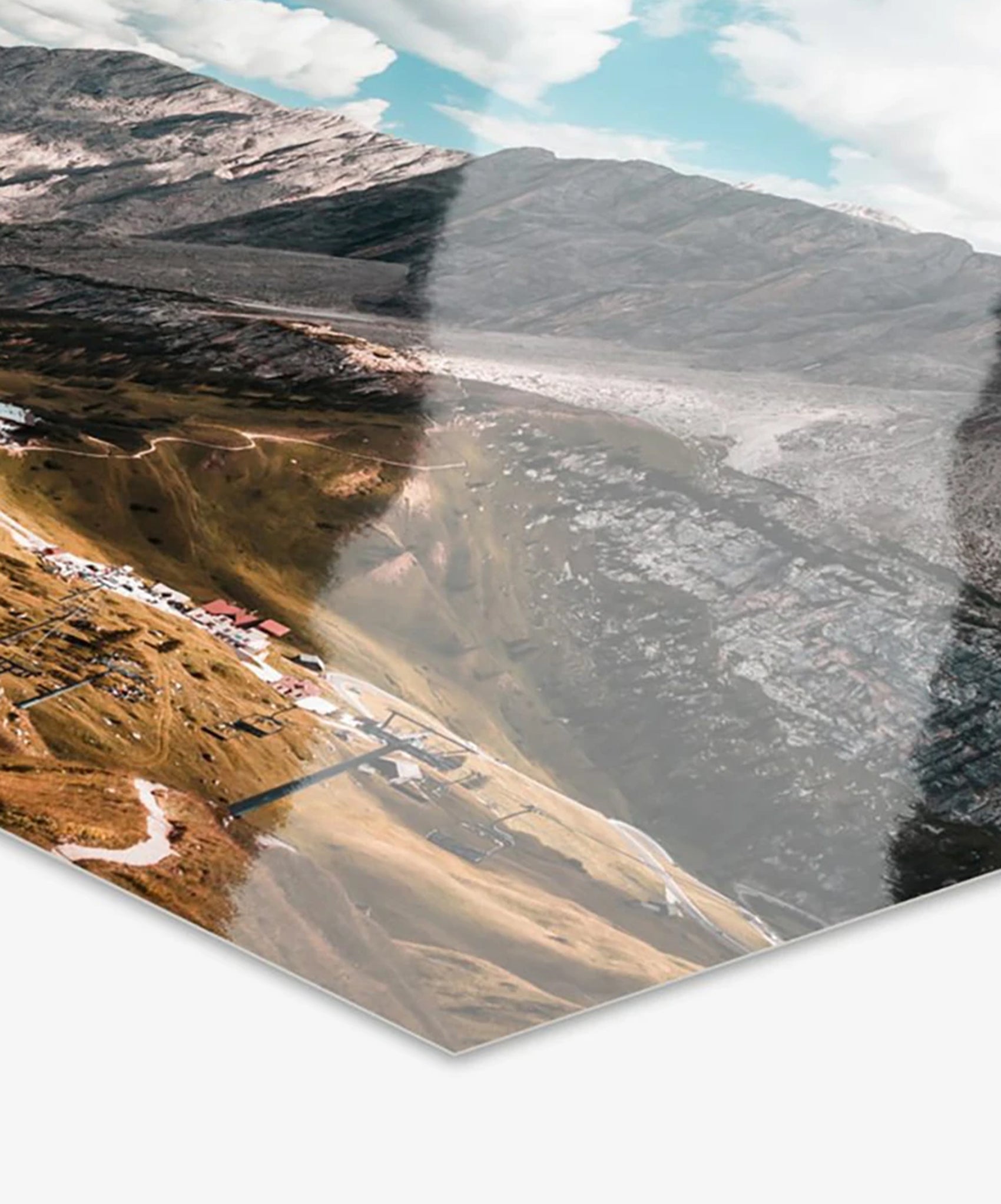 We mount each print under 2mm thick acrylic glass with solid aluminum Dibond backing. Acrylic glass is light, shatterproof, and resistant to temperature fluctuations. The properties of your artwork are intensified under our glossy acrylic glass which highlights the vivid color and enhances the impression of depth.